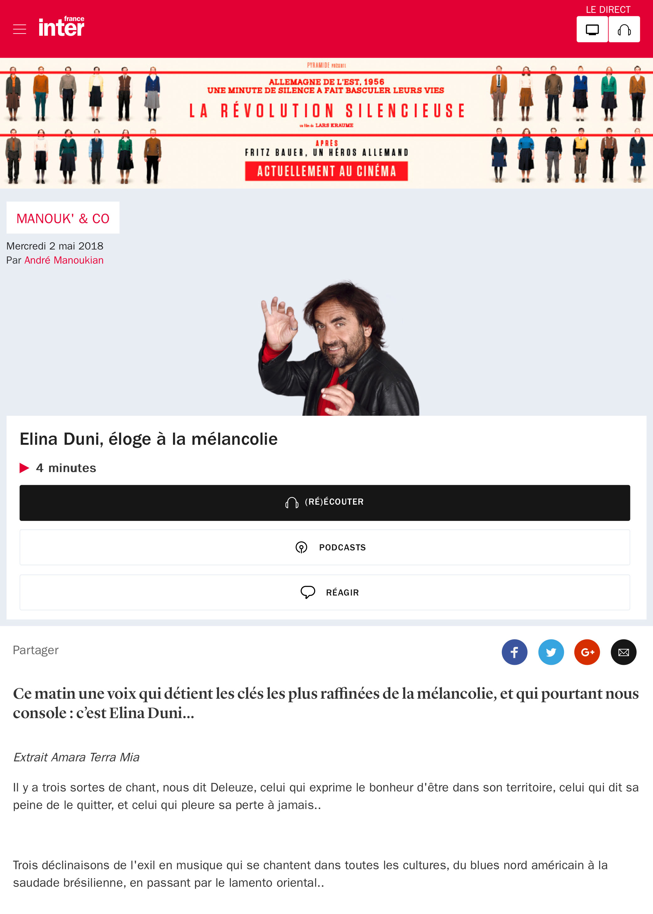 “Elina Duni signe avec Partir son plus bel album. Un pélérinage sur la route des vivants et des morts.”